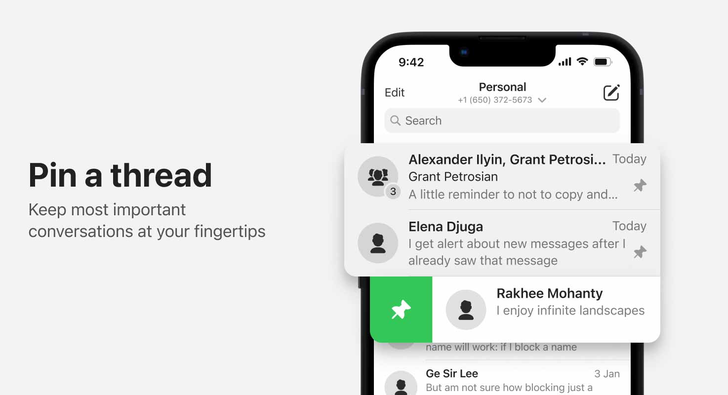 Usually, your most recent text message appears at the top of your screen. But when you pin an important message thread, it will always appear at the top of your list. You can use it as an easy way to see conversations with your best customers or texts from your boss. You can also use it as a temporary reminder for tasks that need to be followed up on when you have more information. When you complete the task, unpin it.
