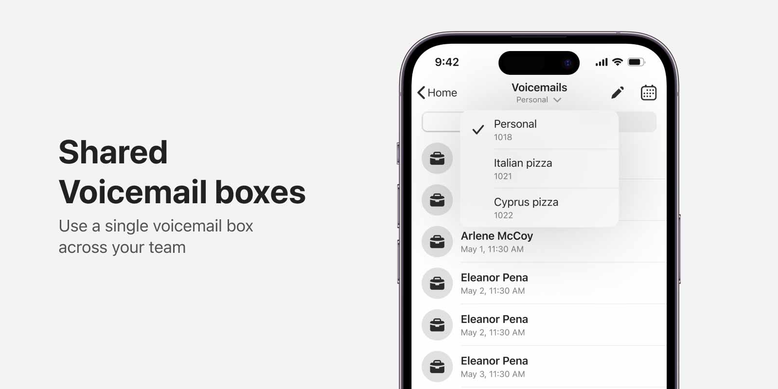 You can create shared voicemail boxes and include any coworker or company extension, such as a ring group. Those assigned to the shared voicemail box have full permission to handle the voicemails as they wish.
