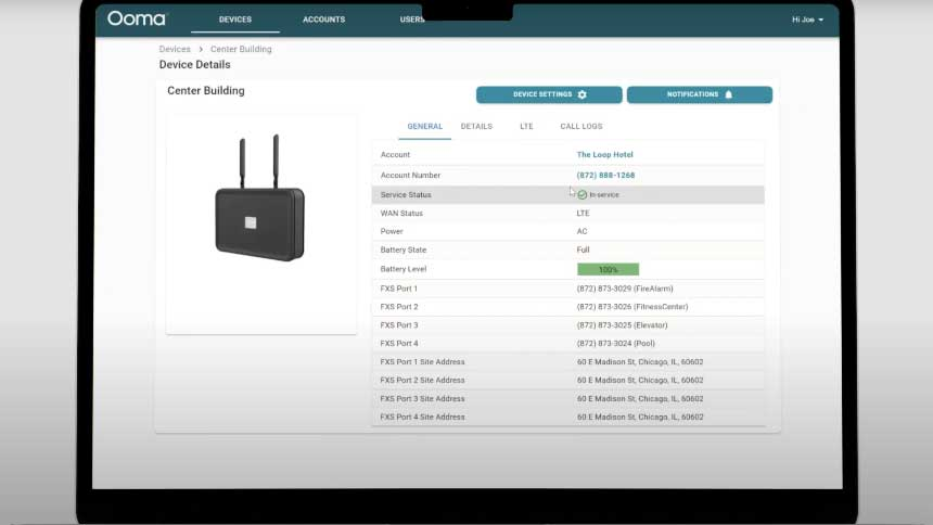 View and manage the status of all devices across your company in one intuitive portal. Receive SMS and email alerts when calls are made from a specific device or should battery backup be enabled.